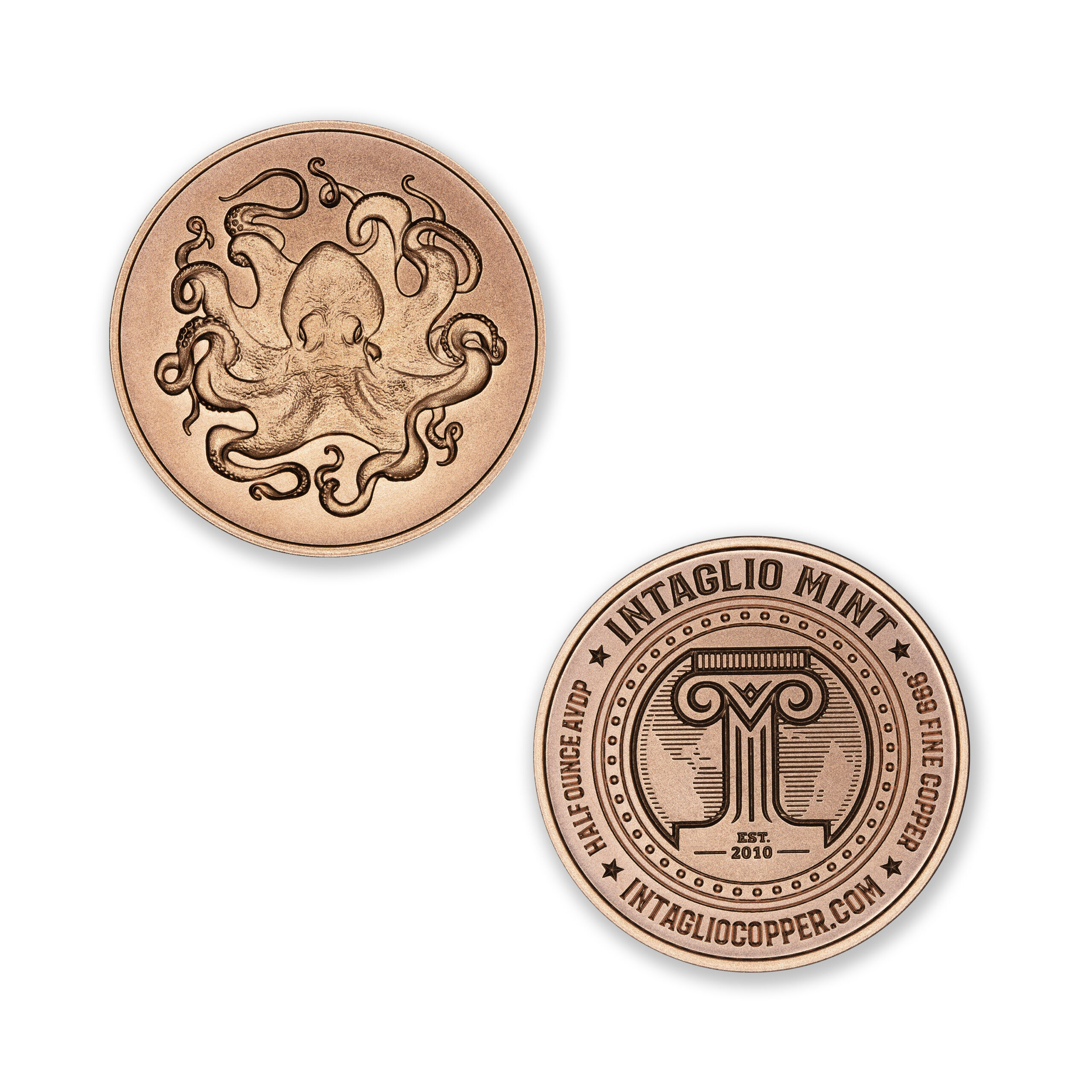 Curious Octopus – 1/2 AVDP Oz .999 Fine Copper Round | 39mm